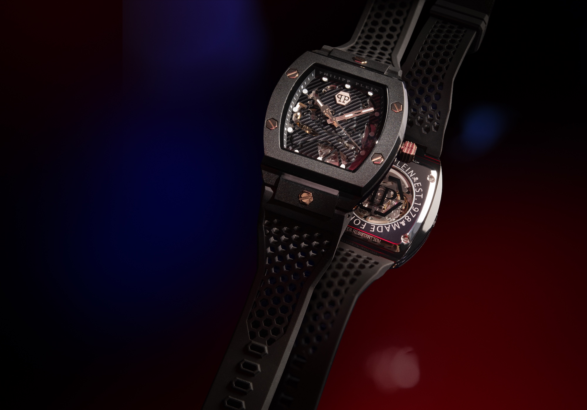 Innovative shapes, striking color combinations, disruptive concepts are combined with an extensive presence of brand icons, such as the Hexagon with PP logo and the $kull motif.